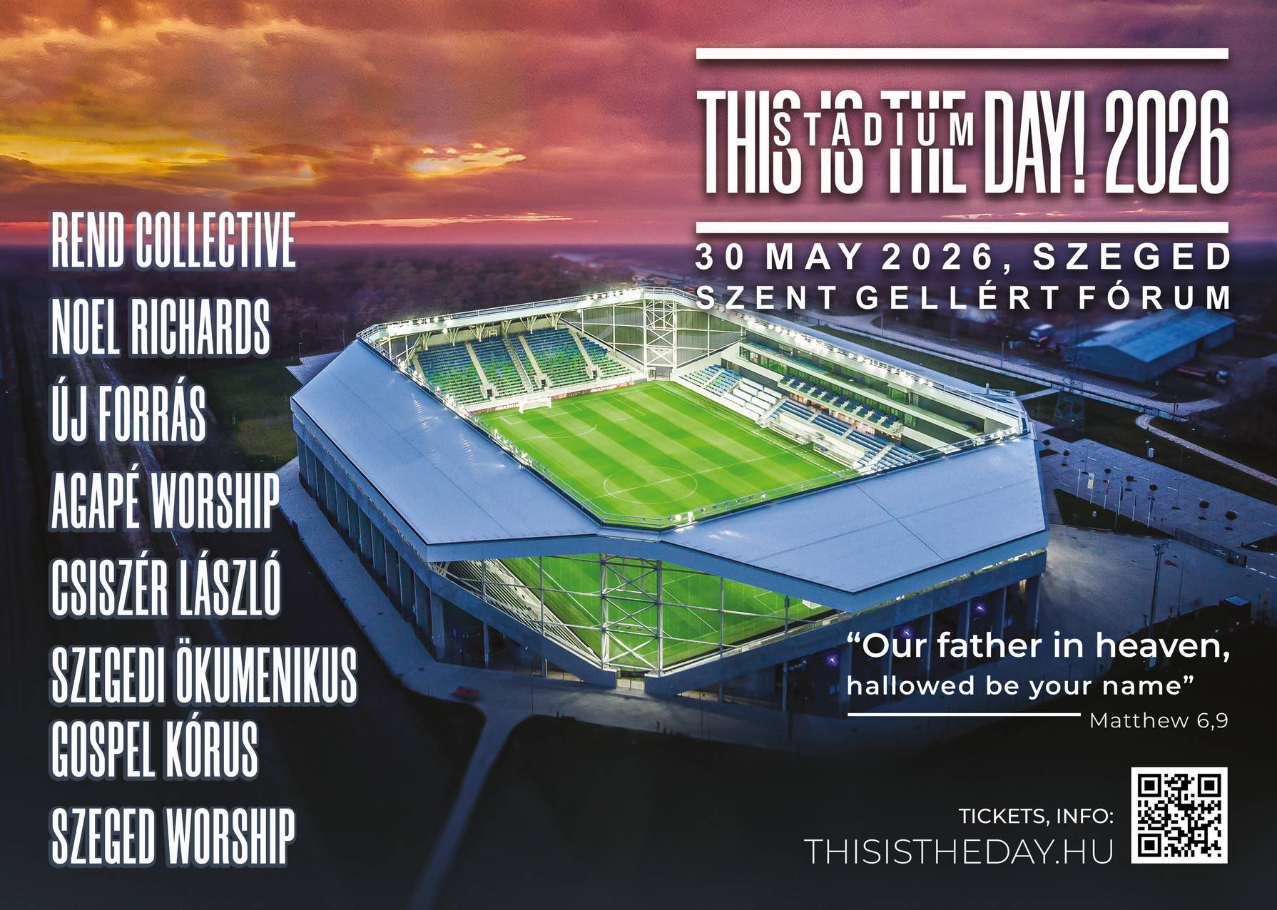 On 30 May 2026, the next major event of This is the Day! will take place at the Szent Gellért Forum in Szeged. This will be the fifth stadium – after Budapest, Debrecen, Miskolc and Szombathely – that we believe will be filled with the praise of God! We call again, let us gather in unity, praising our Heavenly Father!